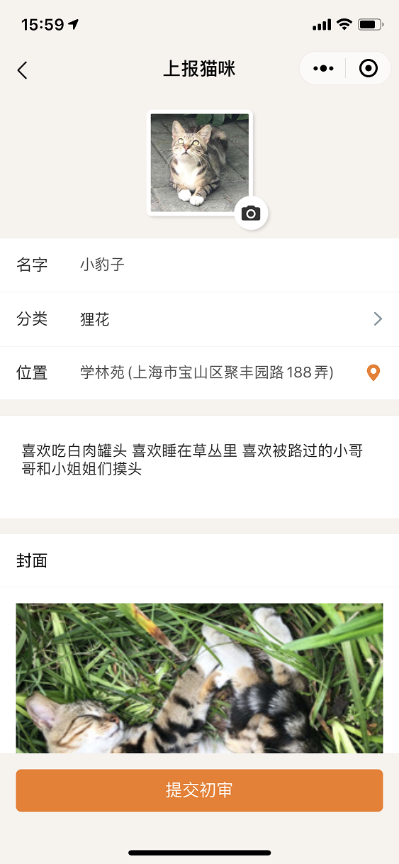 6月1日上线了 1.0.0 版本,小程序中只有查看功能,配套也开发了一个 PC 管理端,上线后发现志愿者和救助站等人员不习惯使用 PC 端操作,也发现了很多细节问题,如流浪猫的隐私保护等。