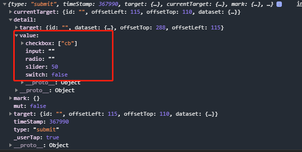 这时候我们点击提交的时候 在 e 对象里面就能拿到from 里面的值了