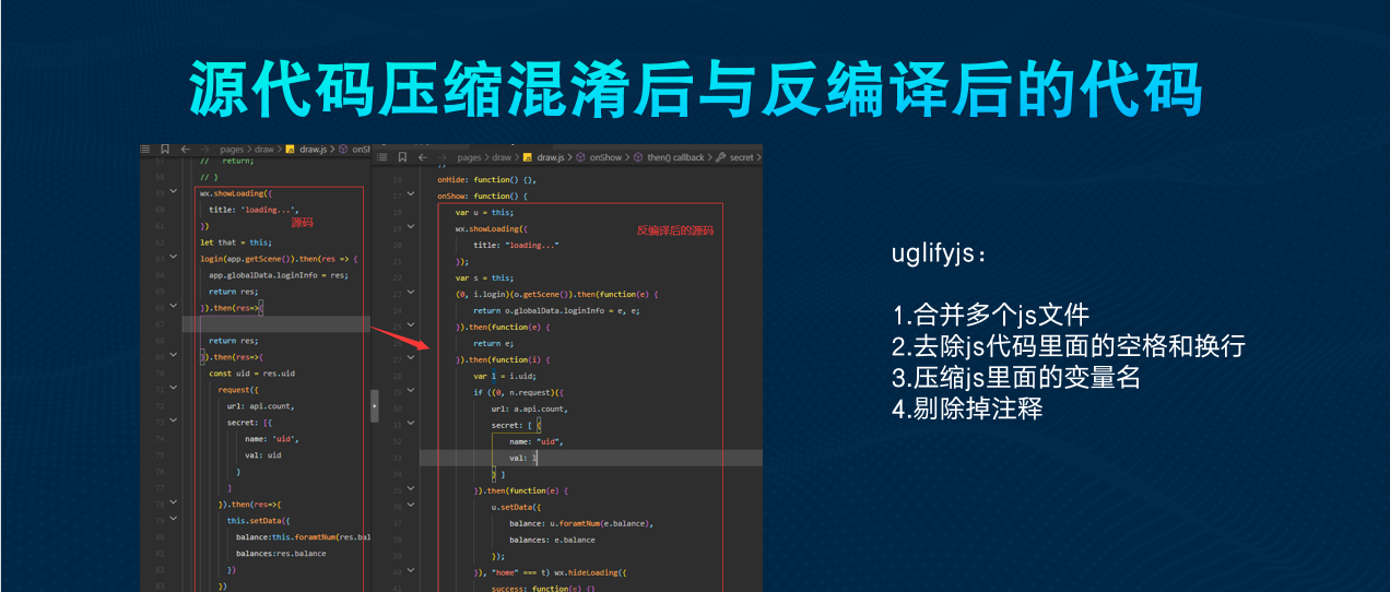 下面展示下勾选了uglifyjs 后的代码是什么样子