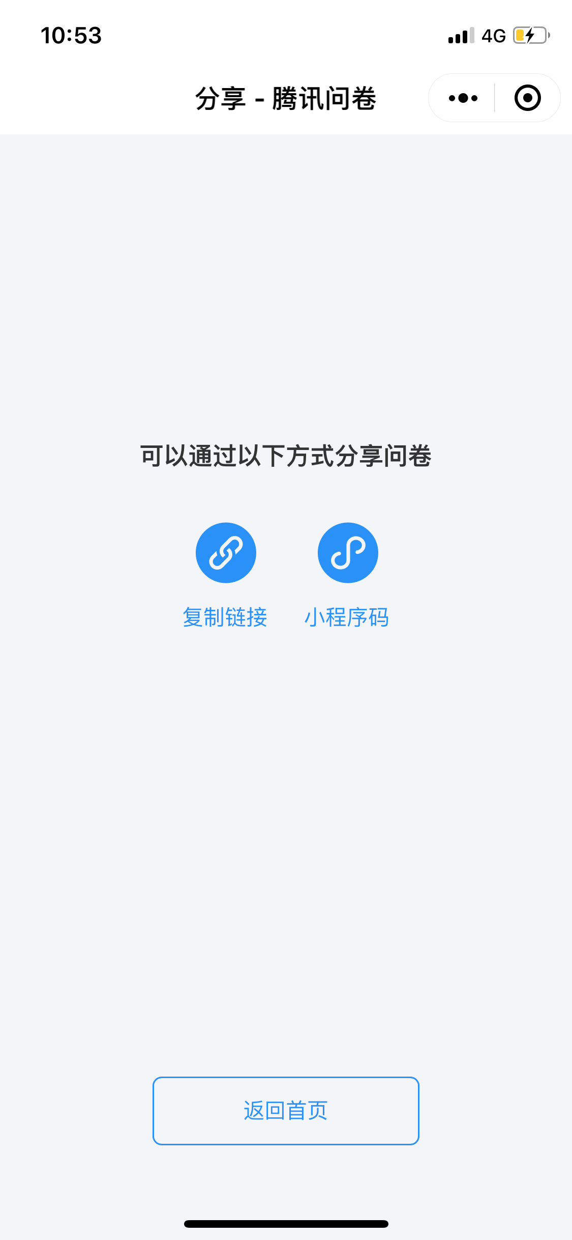 问卷下发主要通过以下两种方式,1、分析;2、小程序码,具体截图如下所示,由于腾讯问卷支持小程序和H5两种形式,所以可以通过以下两种方式下发问卷,但是在我目前开发的小程序中,只有小程序一种方式,所以更多关注的是小程序这种方式就好