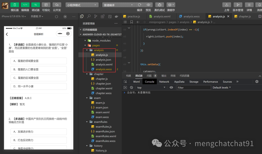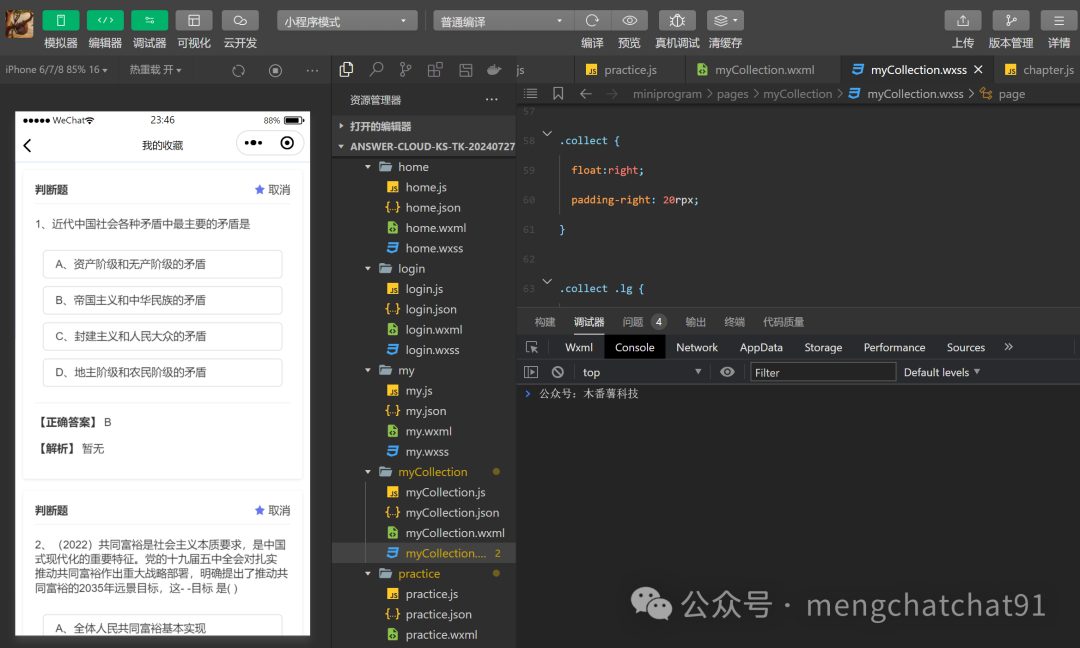 开发一款答题小程序界面,涉及到的技术栈,主要包括微信小程序的WXML、WXSS、JavaScript等。