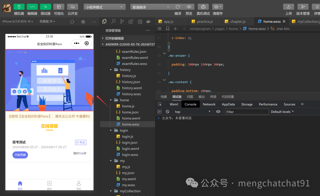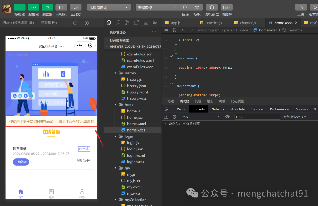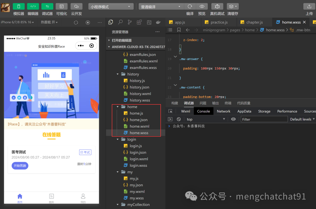 (2)WXSS:设置出题界面的样式,确保布局合理。
