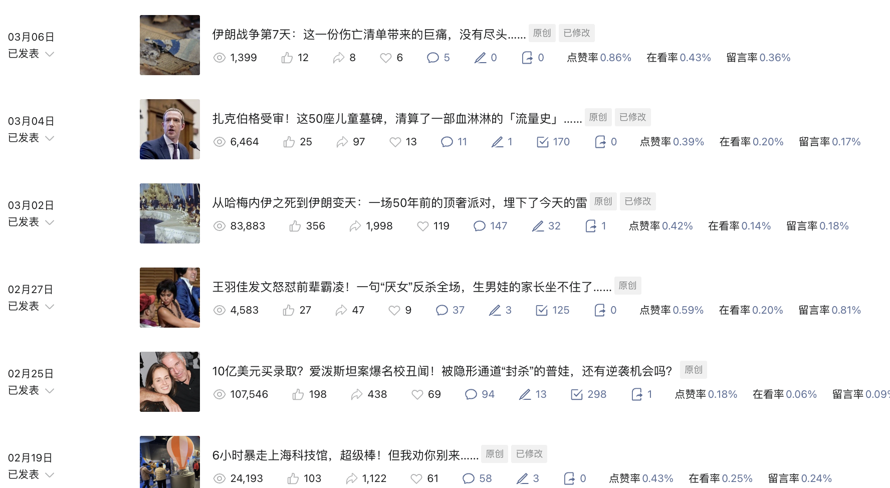 因为比较熟悉行业的写作规范,所以写了8个月,整体流量都还不错,一直到今年初,只要选题得当,基本都能维持在4位数,同时,从上个月开始,有几个爆款,还有十万加文章的出现。