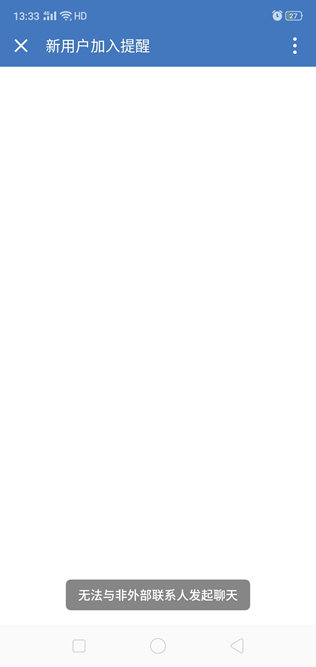 在员工未找到消息添加的情况下,点开卡片消息,进入聊天测试,提示:无法与非外部联系人发起聊天。
