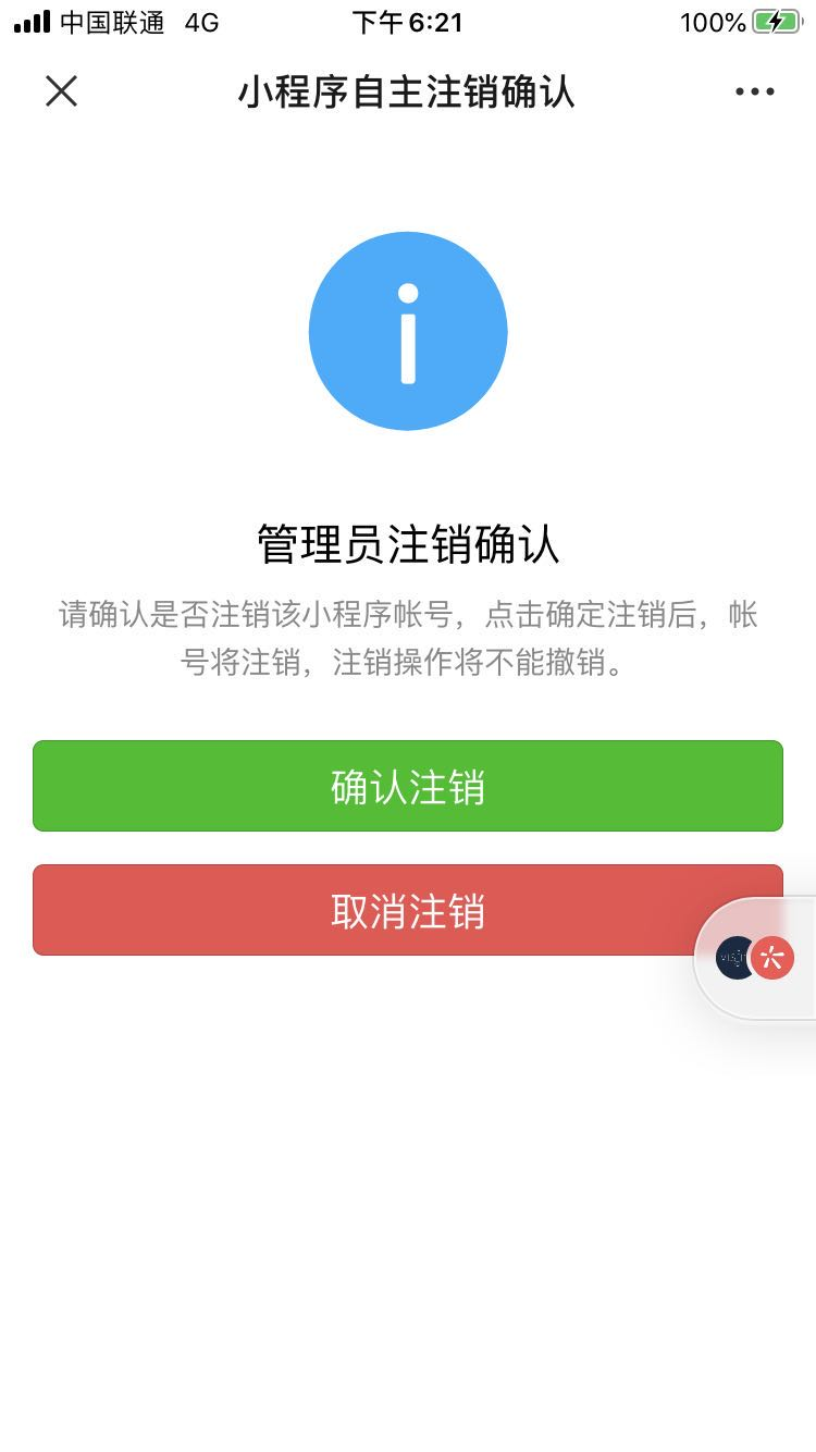 默认:目前小程序企业类型的帐号仅支持有对公账户的注销。