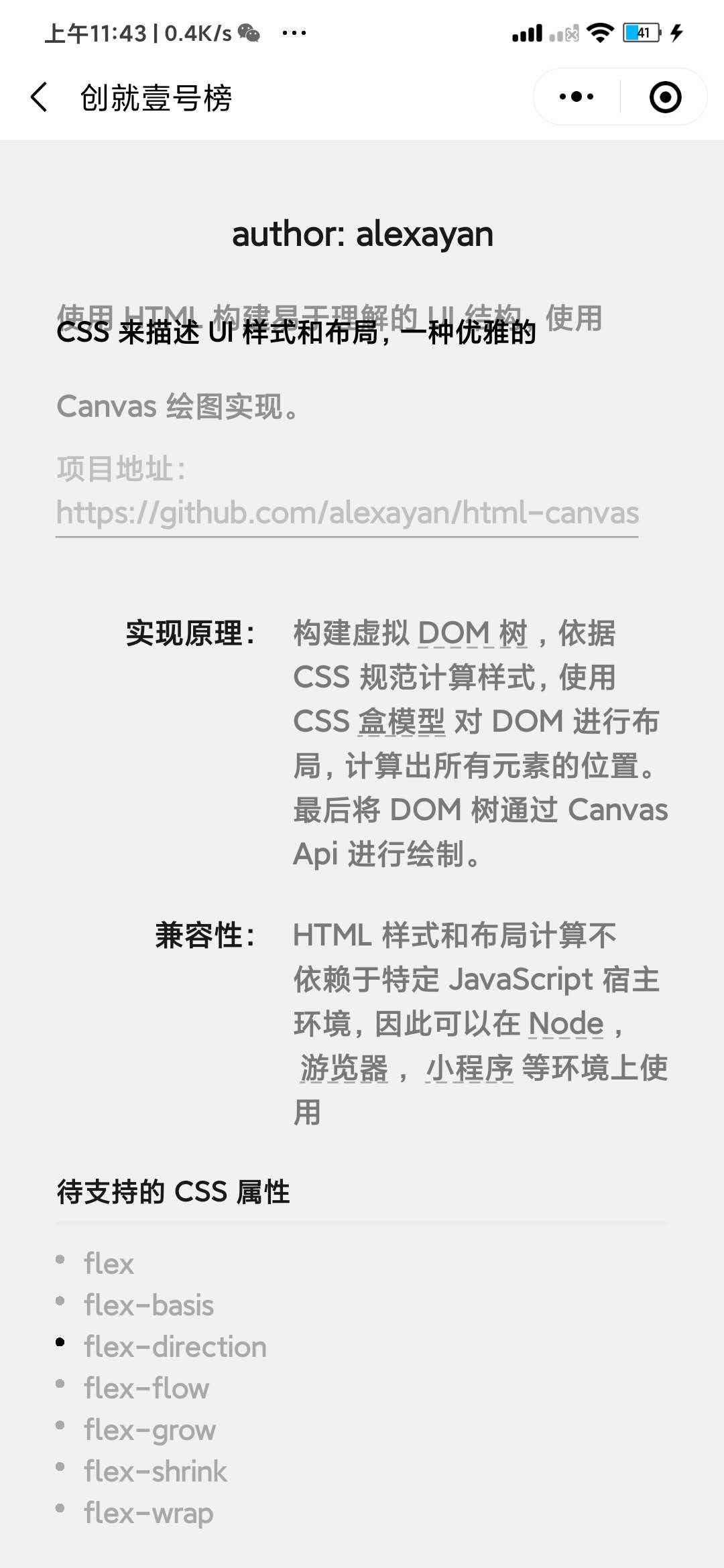 构建虚拟DOM 树,依据 CSS 规范计算样式,使用 CSS 盒模型对 DOM 进行布局,计算出所有元素的位置。最后将 DOM 树通过 Canvas Api 进行绘制。