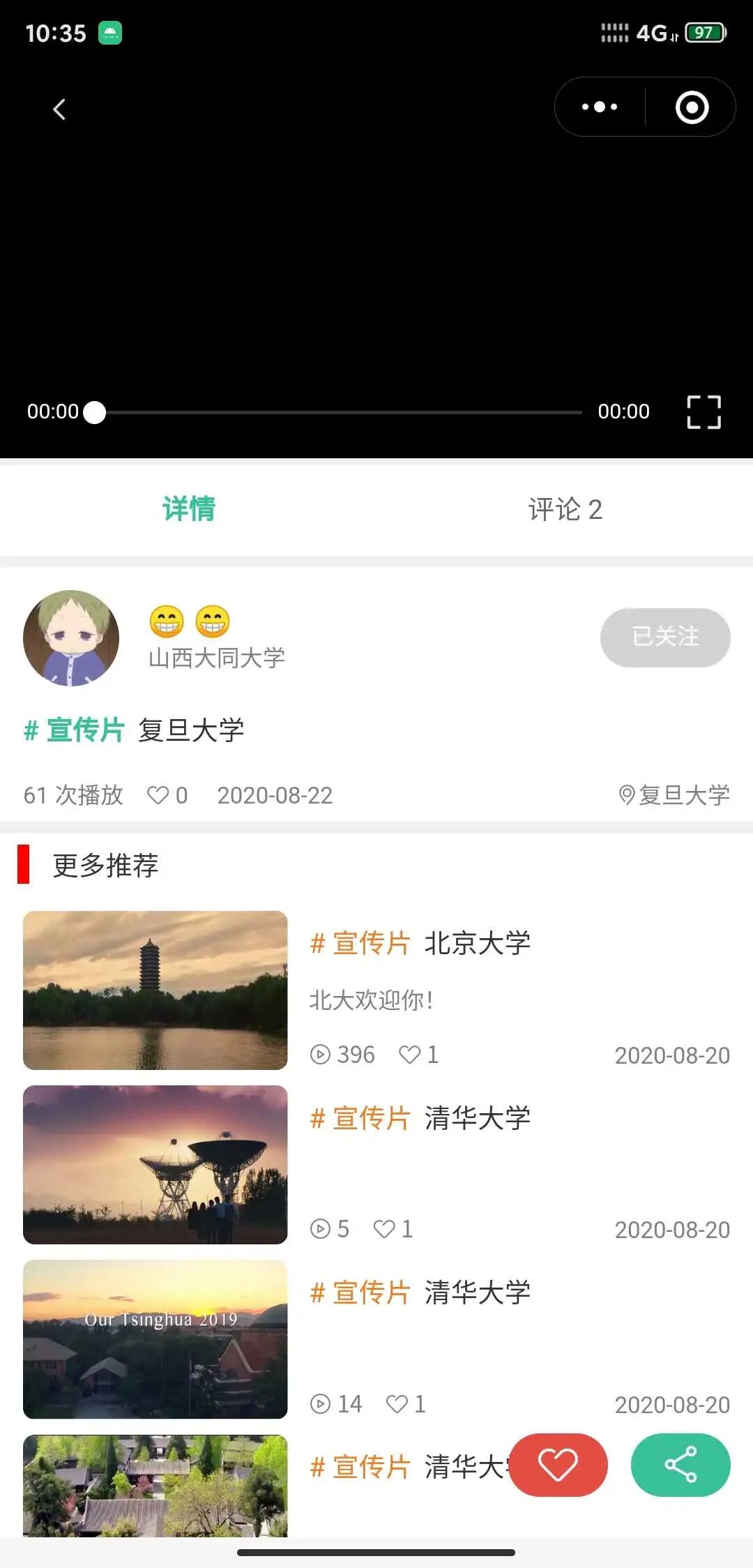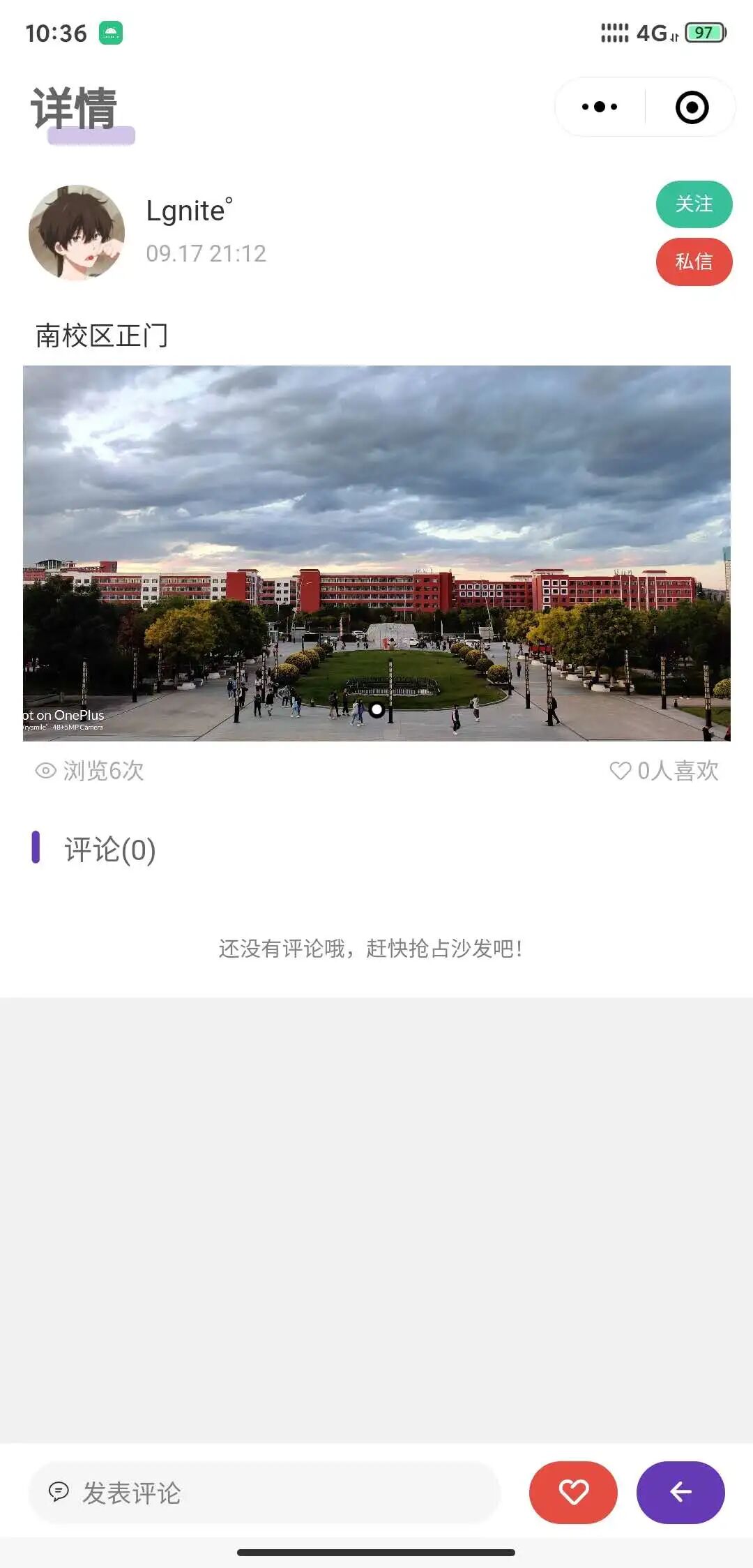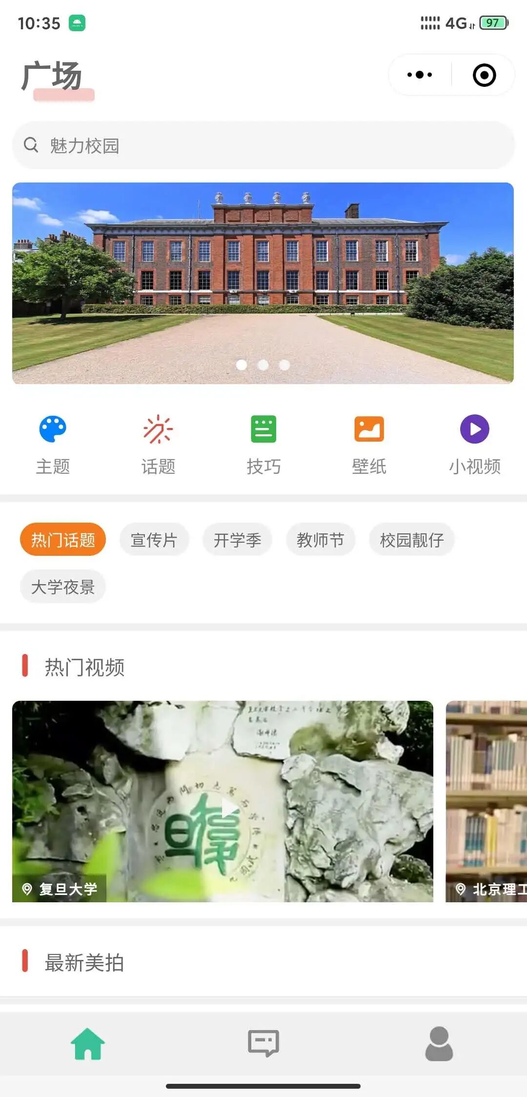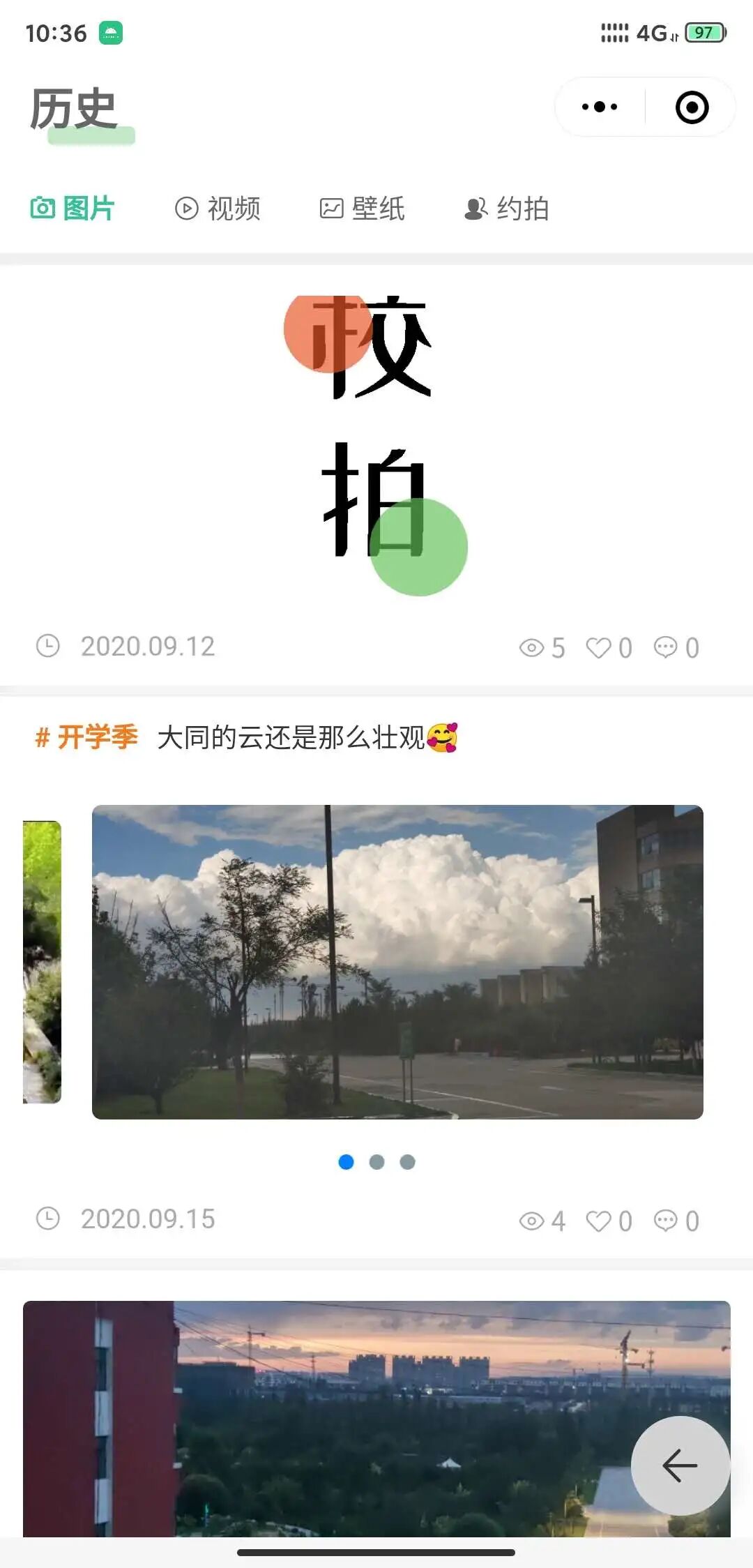 - 每个人拍照都有他的目的性,无论是分享还是收藏还是记录,最终目的都是想要保留此时此刻的那一瞬美景。但是照片拍好后存在哪里?分享到哪里?怎样与大家去讨论?或许QQ空间、朋友圈或微博是个不错的选择,可终究都是一个小圈子的人,无法分享给更多的人。所以我们校拍的小程序出现了,大家的照片有了分享的地方,还都是志同道合的人。而我们也可以更好的宣传每个用户的学校,让更多的人了解到用户的学校。