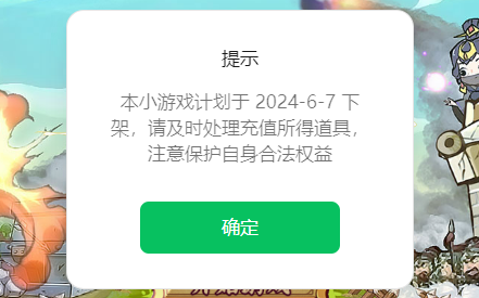 - 内购小游戏确定停运的第一时间,应在游戏内发布停运公告+补偿计划(仍要坚持运营维护2个月)