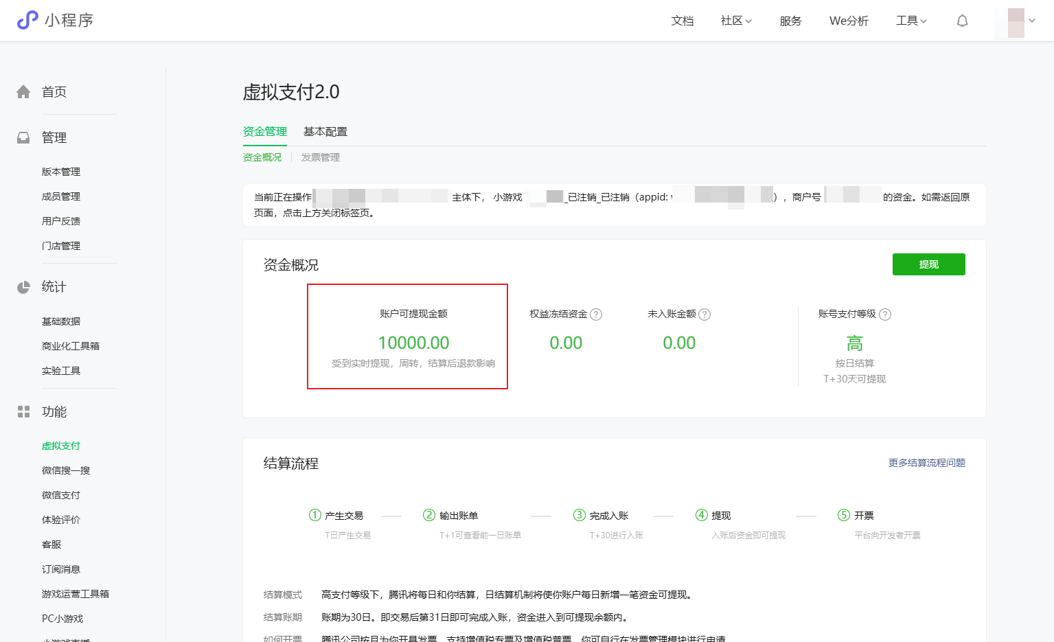完成注销后,申请虚拟支付提现(以及释放1万元支付等级提升冻结金)