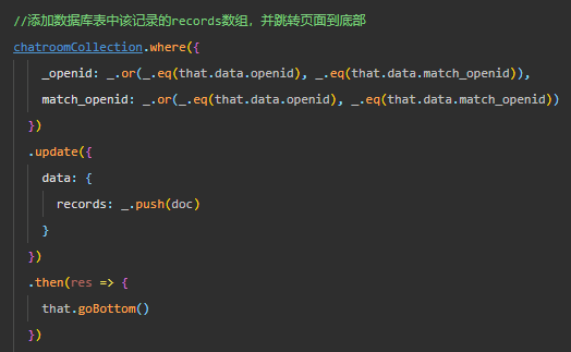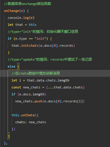 update:在这条记录变化时,比如records中新增了一条记录,程序会主动调用onChange函数,从而更新我们的页面的records数据,从而保持数据库的聊天数据和当前页面的聊天数据一致