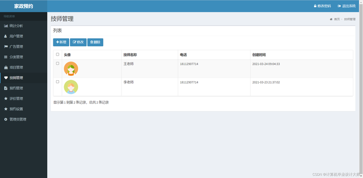 技师管理:技师信息维护