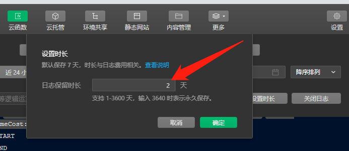 云开发月调用量超过100万的小程序主,请注意,调整你的日志策略,默认设置为7天,我调整成了2天,随后再看扣费情况,继续扣费就点击右边的“关闭日志”按钮,彻底关闭日志。