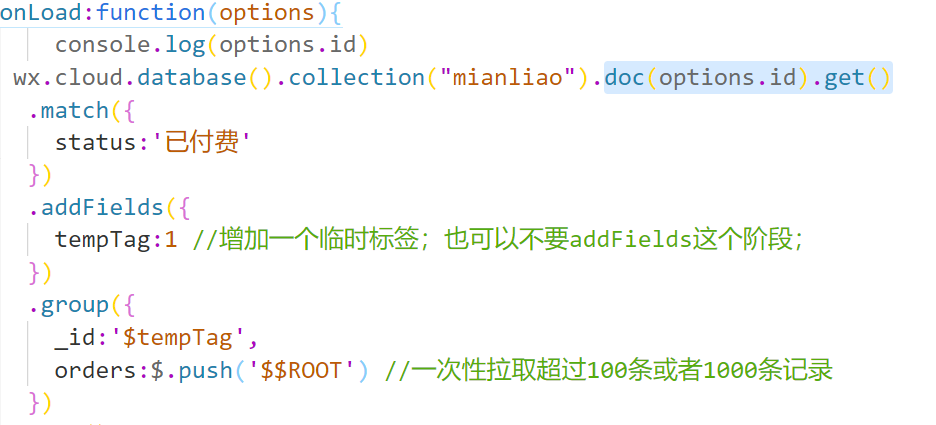 orders:$.push('$$ROOT') //一次性拉取超过100条或者1000条记录