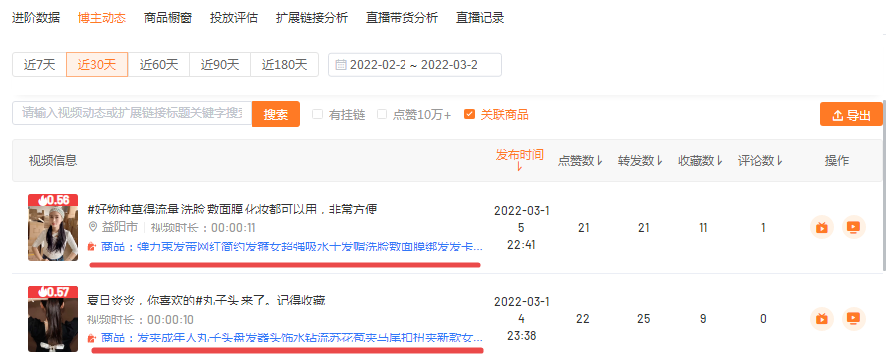 在【友望数据】-【直播记录】中可以发现该账号近期不少直播时常超过8小时。