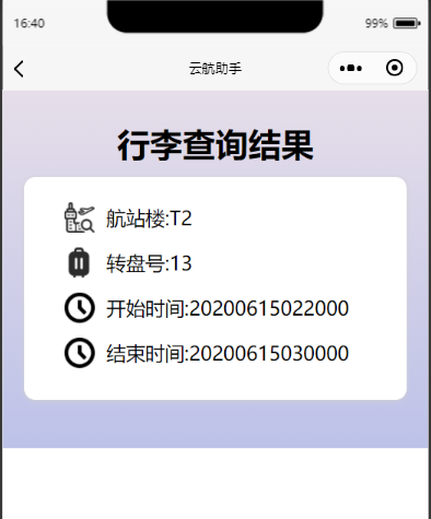 行李查询界面: