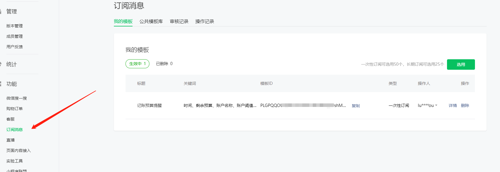 最后再说下订阅消息模板怎么开通。