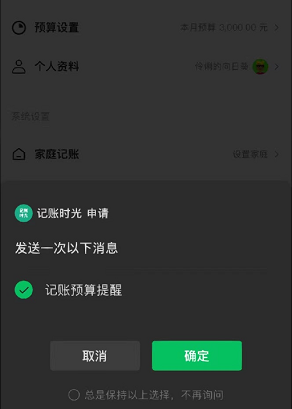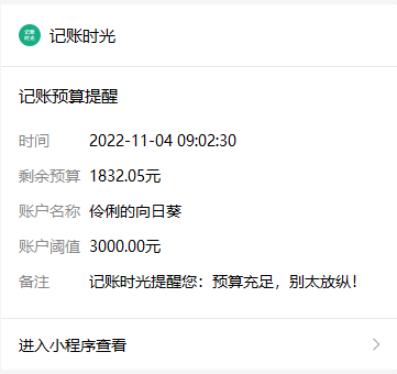 在用户进行记账操作的时候就会通过api给用户发送一个订阅消息啦