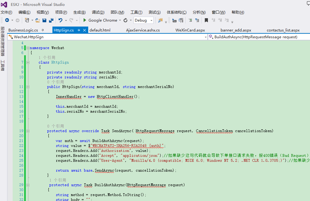 参考资料里面讲的比较详细,也有官方的文档,不过文档不全,导致我的调试程序一直出现问题,请求微信的统一下单接口总是报400错误(Bad Request)。