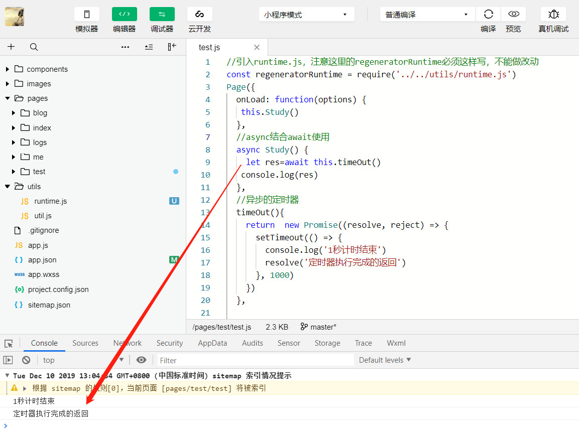 那接下来我就教大家如何在小程序代码里使用es7的async和await语法.