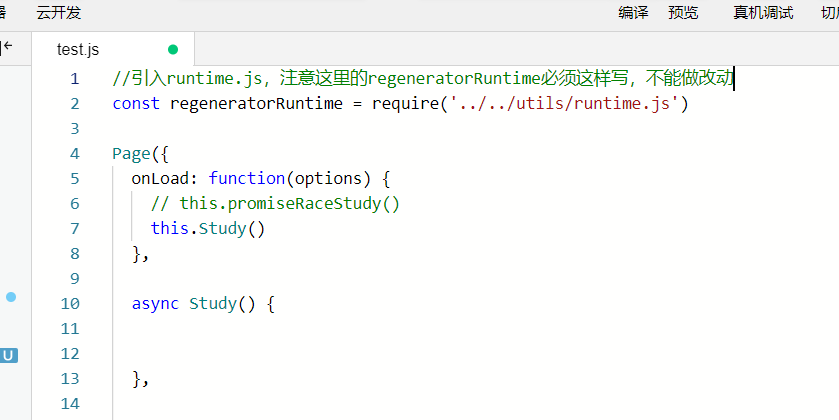 这里需要注意的是.上图我们引入runtime.js时的变量名regeneratorRuntime必须和我这里一模一样.要不然就会引入不成功.