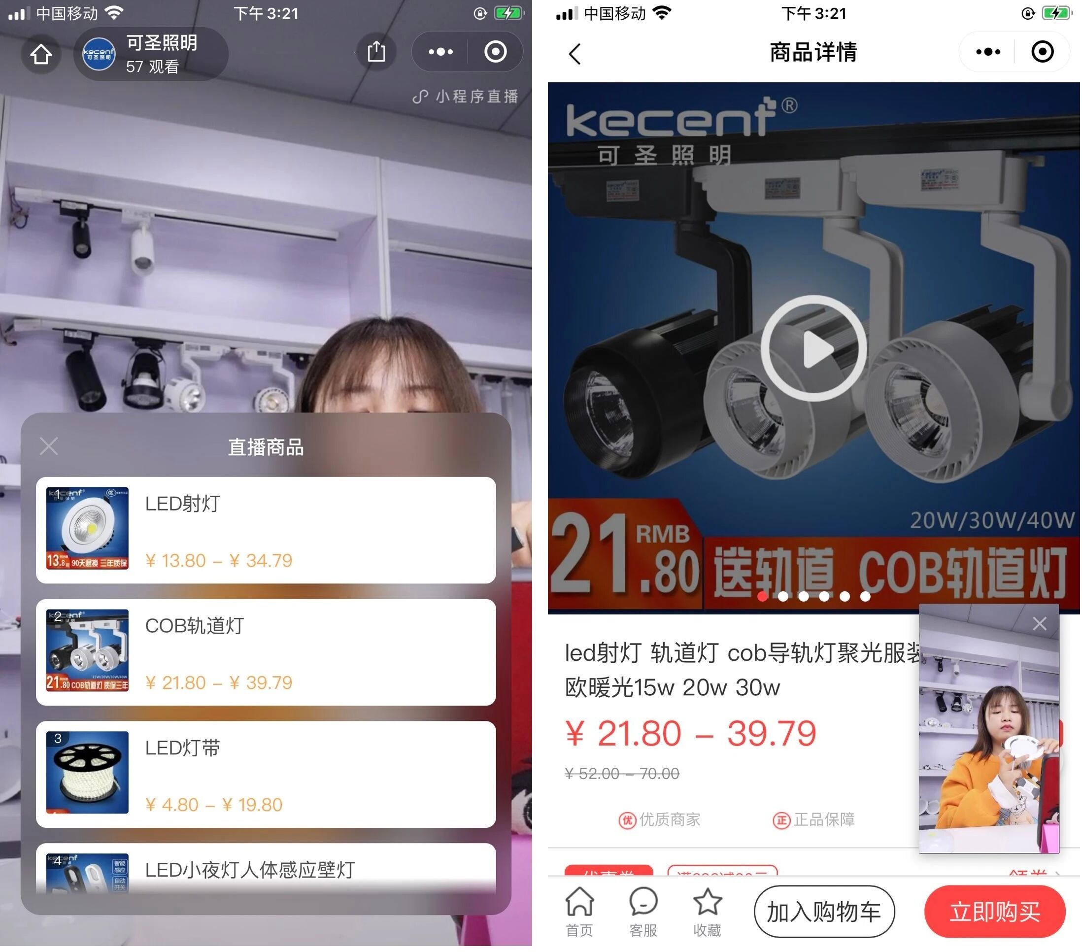 小程序直播的边看边买完全在商家自己的小程序中进行的,用户互动与商品销售闭环。用户可以在观看直播的同时直接购买,或者将商品加入购物车打包购买,整个过程不需要跳转。商家也可以自行决定直播的时间、形式等,灵活度更高。