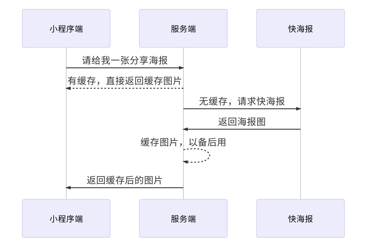 所以后端只需要做一件事,就是提供一个 API 给客户端用,这个 API 被调用的时候去请求快海报的服务器,再把结果返回给小程序就好了。