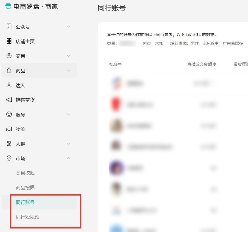 这里的“同行”是指与你的店铺经营类目相同,且在同一层级的竞争对手,你可以关注和分析他们的账号。