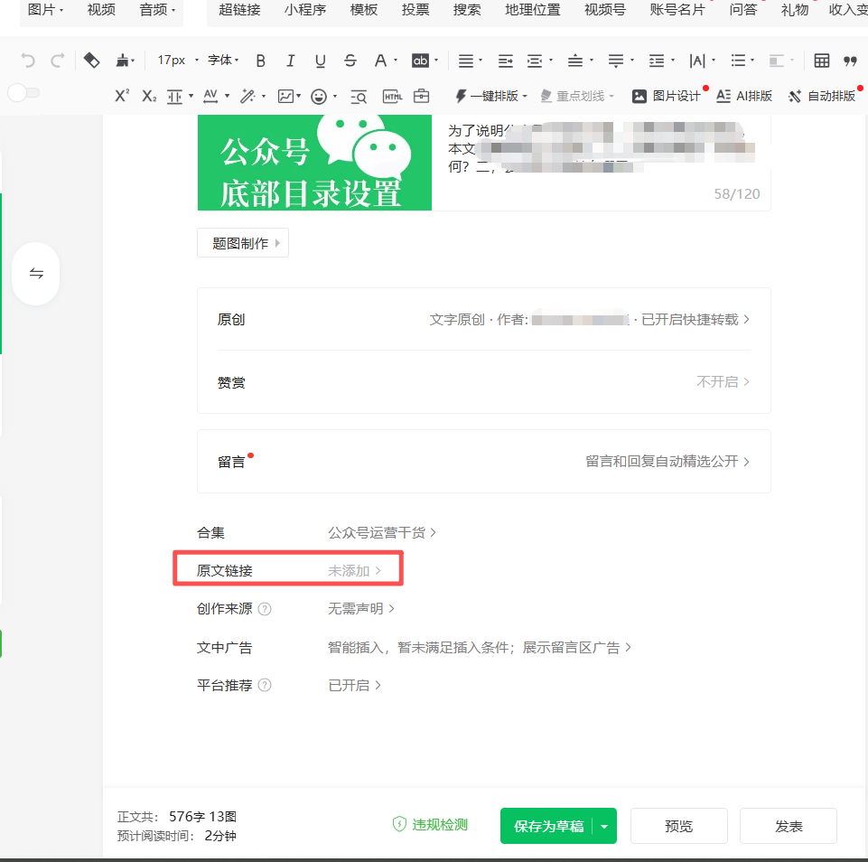 首先,公众号文章内容跳转外链的条件是: