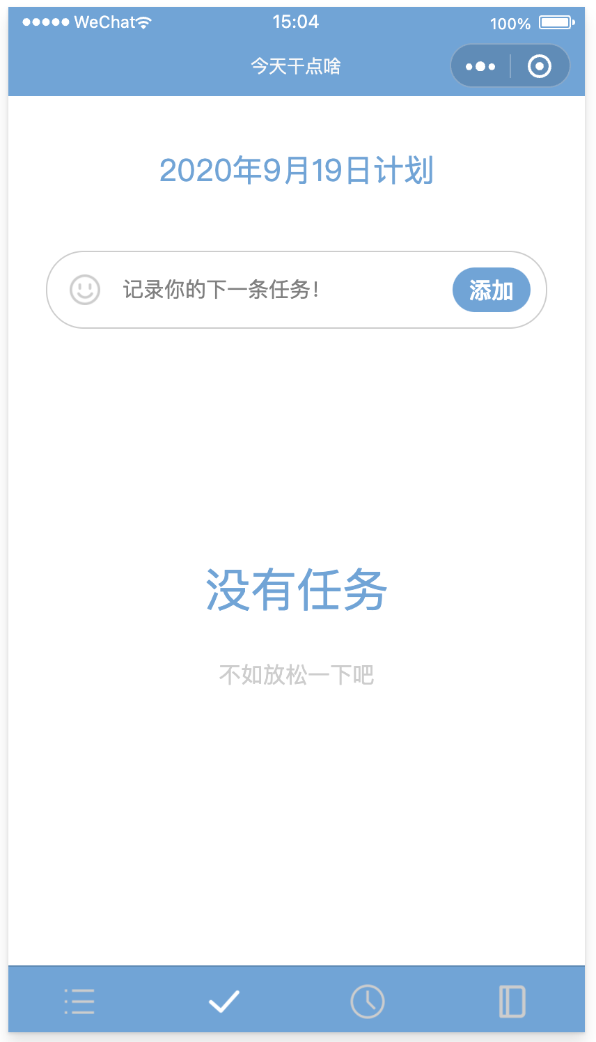 当今日没有待办任务且已完成任务均被删除时,界面展示“没有任务”字样。