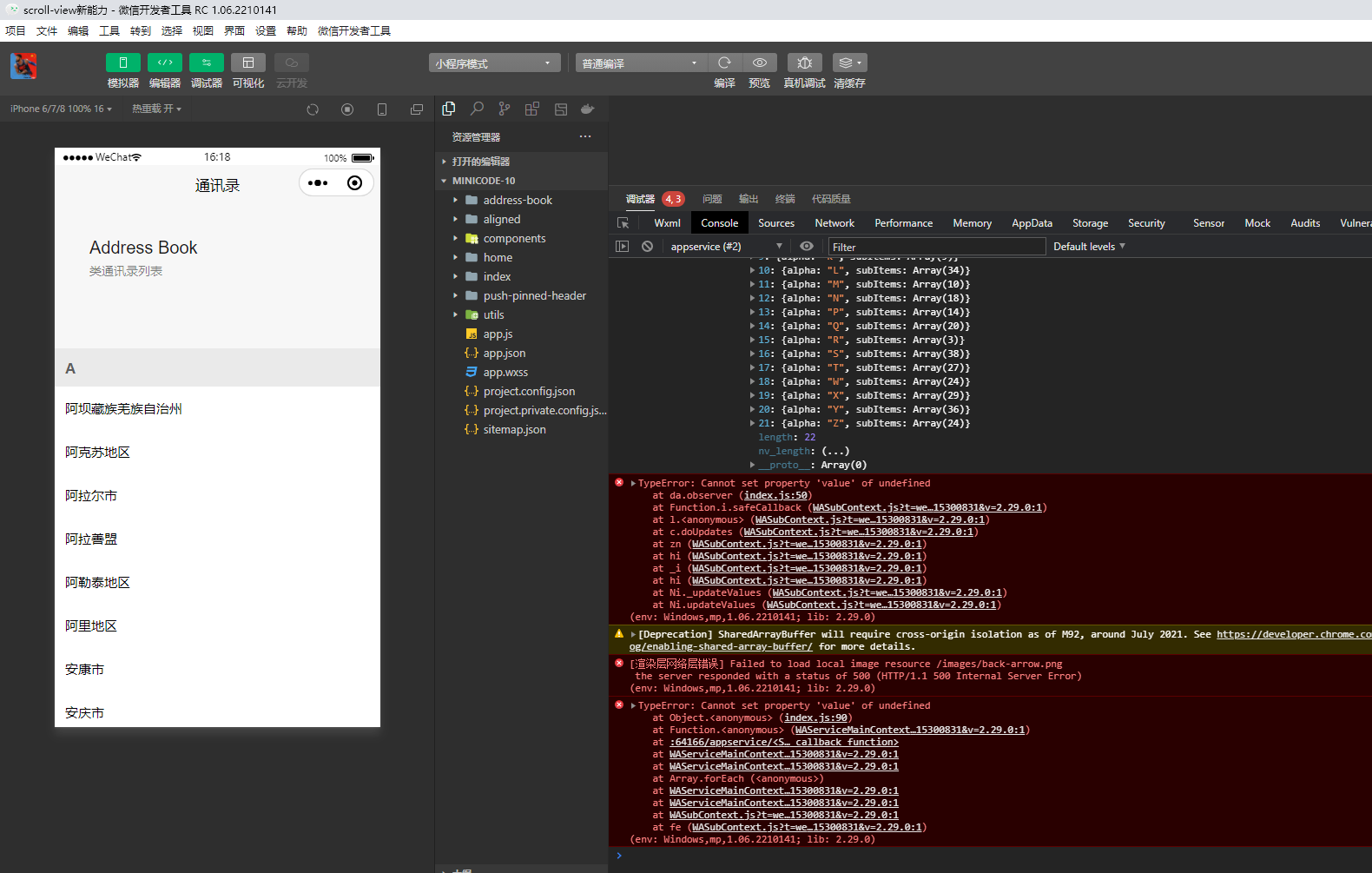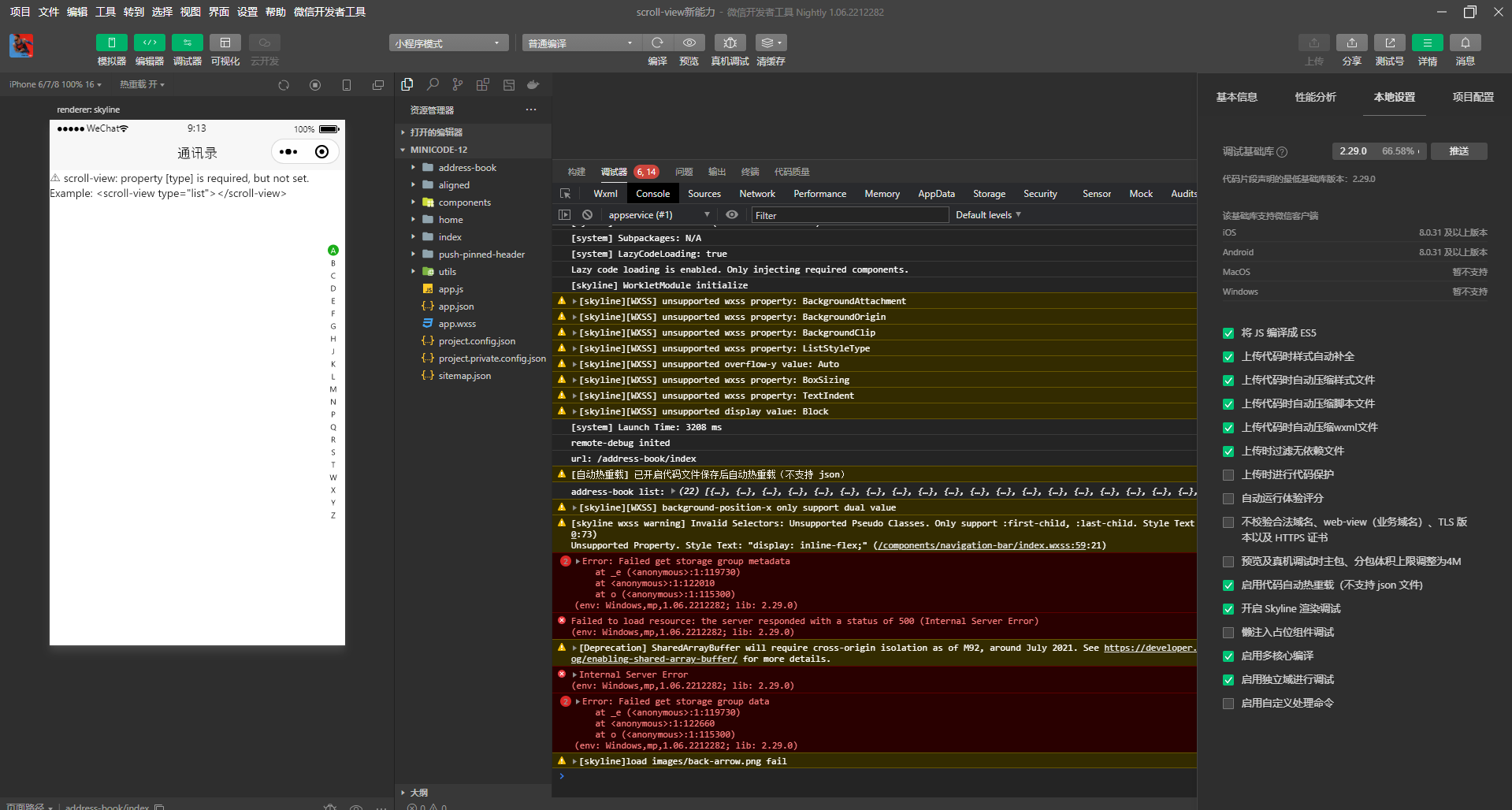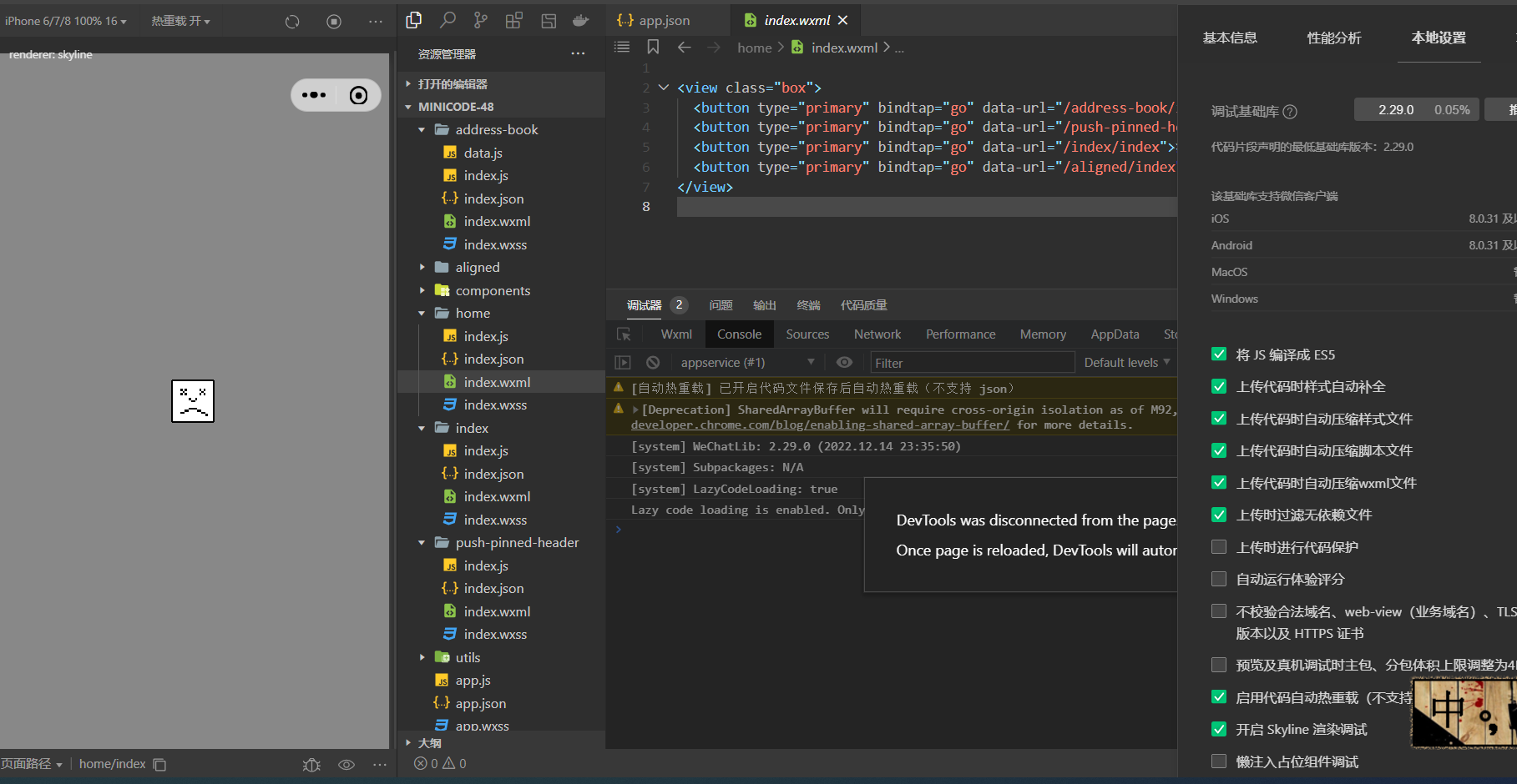 用了最新版的1.06.2302092开发者工具,以及2.30.1的调试库,在开发者工具中展示瀑布流是正常的,但是手机中预览,就变成了一列,而且无法页面滑动