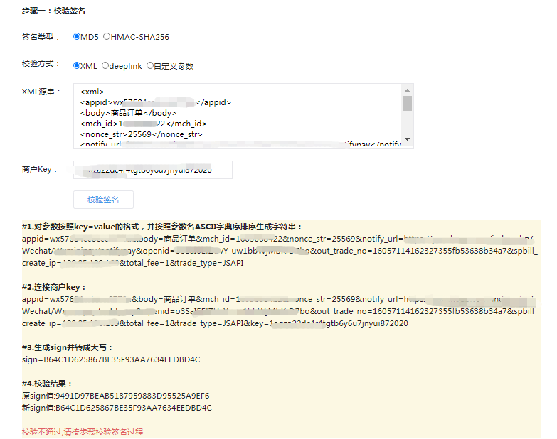 在前面效验工具上效验是通过的,但是微信的接口却返回 ,签名错误是什么原因