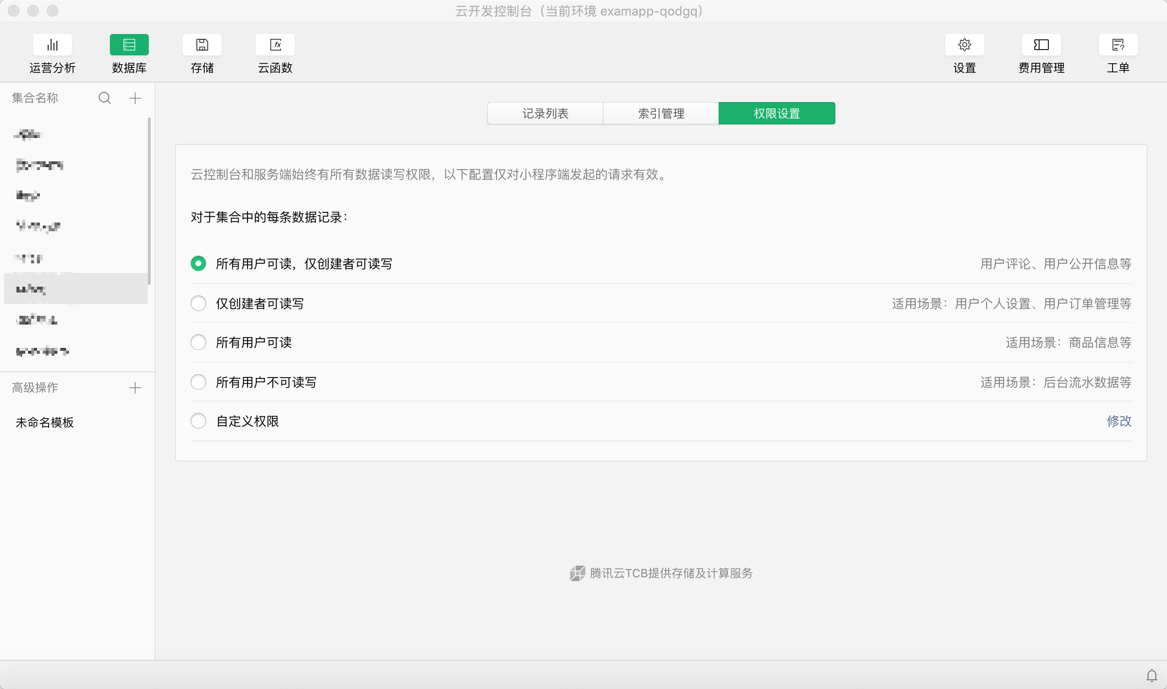第五步:设置数据库每个集合的权限