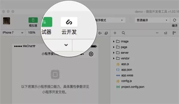 小程序开发者工具内现已增加云开发功能,有了它开发者无需自己搭建服务器,就可实现小程序快速上线和迭代,大大节省开发成本、加快开发速度。