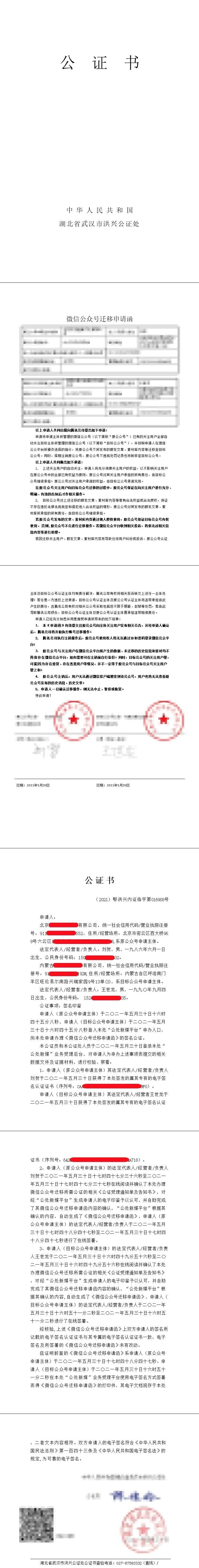 准备好后开始办理公函公证书,可以在网上办理某宝1-2百左右。线下的话地图搜索:公证处,提前打电话问问能不能做公众号迁移公函公证书,问好了再去,大约3-5百左右。(下面是我的公证书)