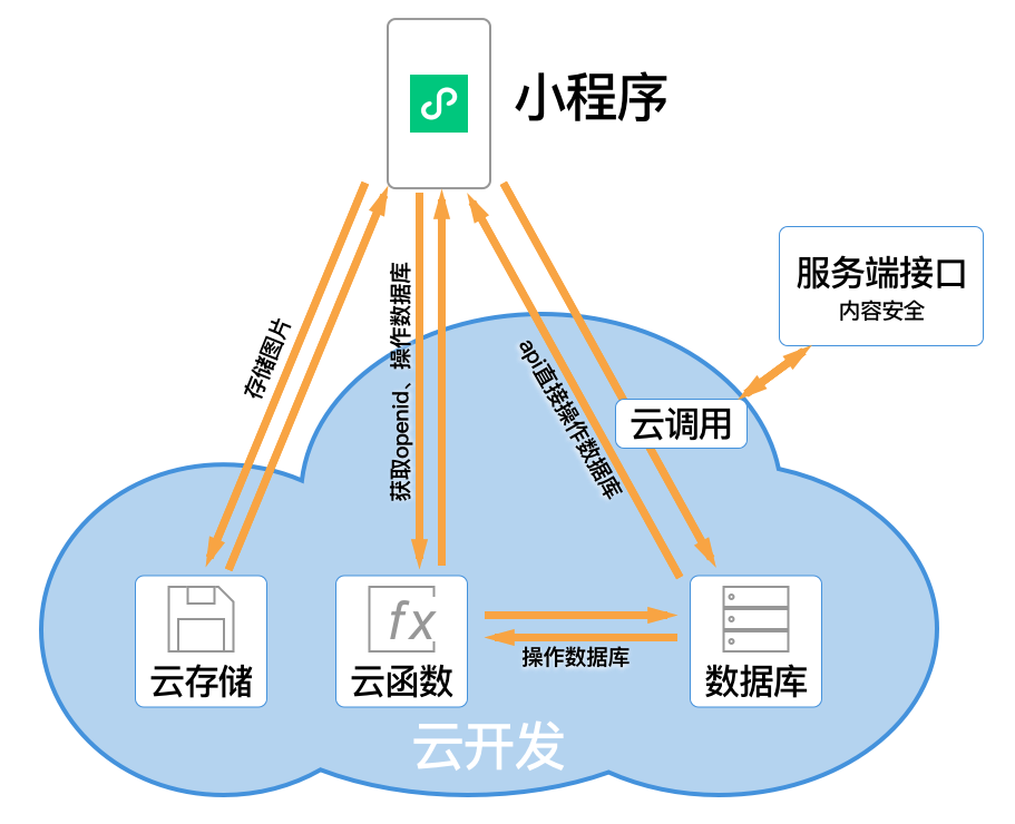 本小程序采用基于云开发的原生开发,用到了云数据库存储数据,使用云函数获取当前用户的openid、读写操作云数据库,云存储保存图片,云调用内容安全接口检查提交信息是否存在违法违规内容。
