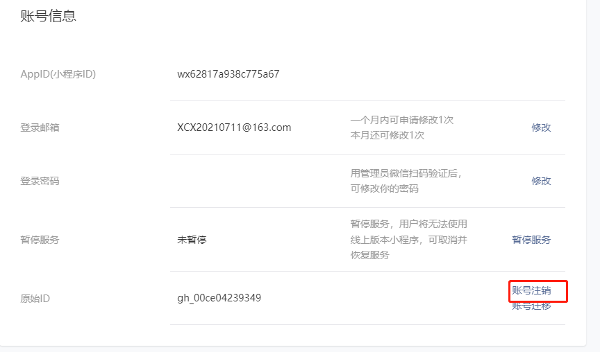 PS:已经冻结的小程序,需要先账号找回,再走注销流程。
