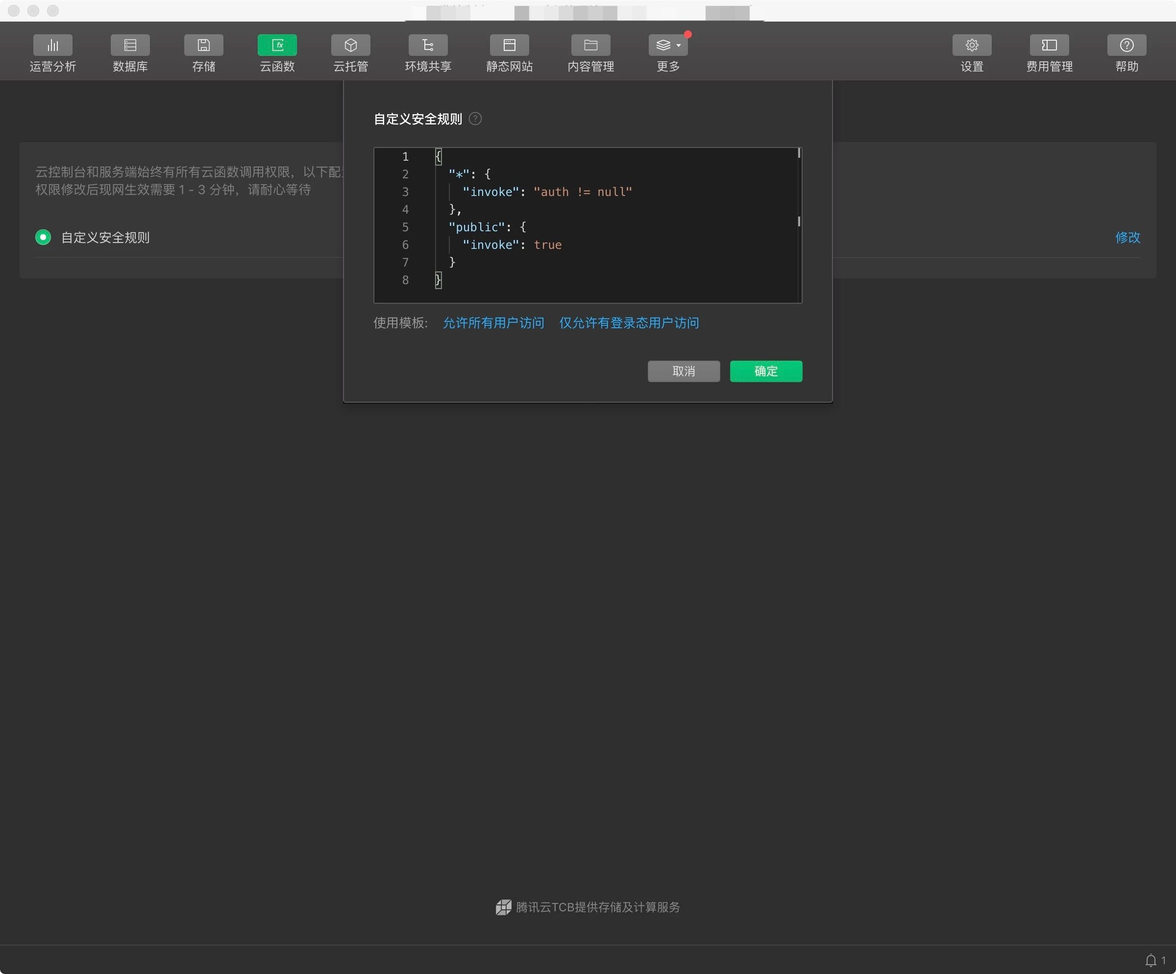 乖乖去云开发里上传静态网站,并打开允许访问,云函数打开未登录允许调用