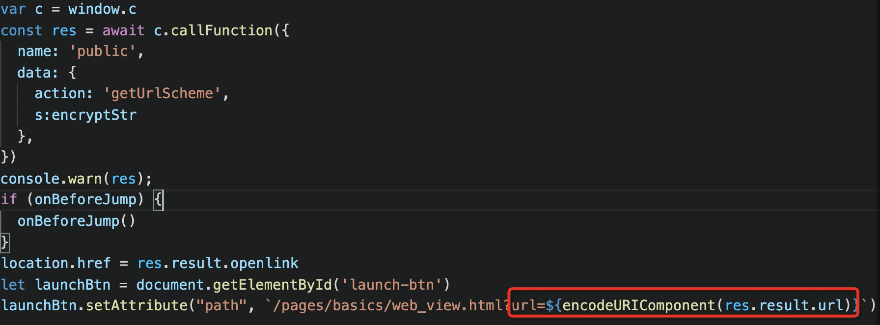 launchBtn.setAttribute("path", `/pages/basics/web_view.html?url=${encodeURIComponent(res.result.url)}`); //HTML 属性