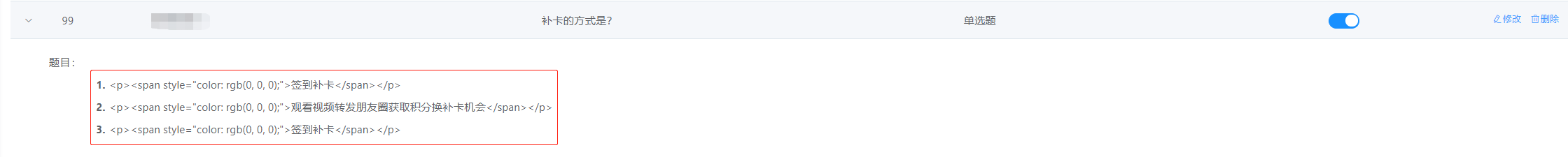 当然在测试时后台去配置文本内容,小程序显示是没有问题的。因为配置的题目是纯文本,小程序里也是直接在text里显示的,没有问题。