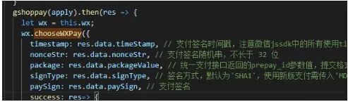 然后调起支付的参数就和小程序是一样的道理,由后台给你传过来即可。