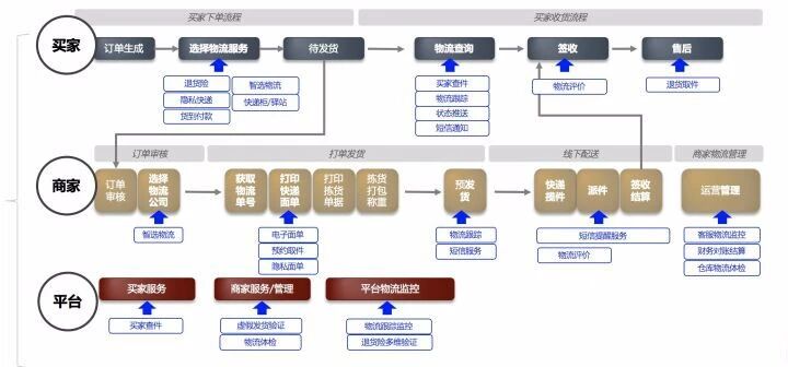 【电商快递单号查询场景需求描述】电商平台及ISV商家对物流api接口的需求有很多,今天我们主要分享的就是快递鸟快递单号查询接口的对接指南,快递单号查询接口对接的应用场景有很多,很多场景会遇到,最主要的就是电商网站用户打开“我的订单”时调用此API显示物流信息详情,电商管理后台的物流系统,客服在对账前查询所有运单的签收状态,并追踪问题,电商平台对商家物流管控,要求必须在多久快递必须发出要看到揽件状态,多久必须收到货物看到签收状态,根据这些状态对商家管控从而提高用户的整体满意度。下图是电商平台、买家、商家的下单发货流程图。