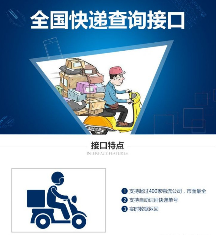 快递鸟集合全球418家快递物流公司系统,打包成统一标准接口,为电商仓储,ERP系统,电商平台,跨境电商、仓储(WMS)、小程序等有系统的用户提供物流快递单号查询接口解决方案,支持高并发、支持的快递公司多、接口稳定性、及时性都有保障。