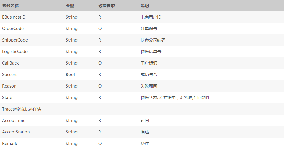 (3)返回的物流跟踪信息按照发生的时间升序排列。