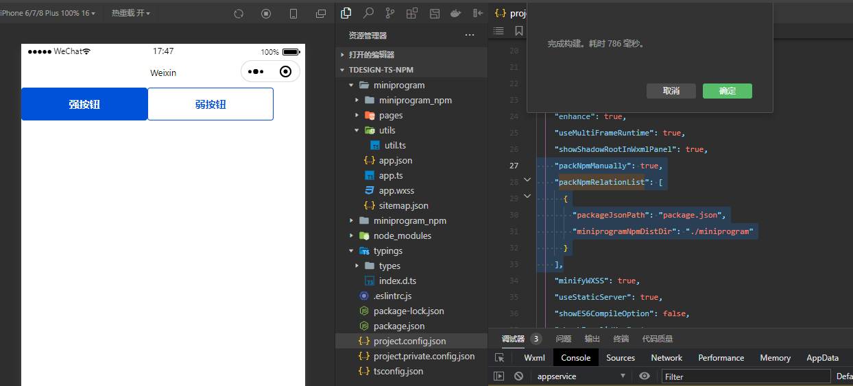 使用命令 npm i tdesign-miniprogram -S --production 测试。