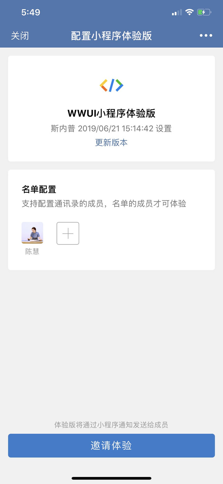 小程序开发者在开发完成后,可以配置体验版来进行如验收等工作。