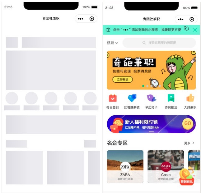 感觉目前你们的骨架屏只为了实现骨架屏而做骨架屏,并不是为了解决项目中请求等待时间过长的这一痛点,刚看了你们github发布的代码,接口请求之前是存在一个loading,也就是说接口已经请求成功了,但是你们还要等待节点绘画完成再去做骨架屏处理,这样大大的影响了用户的等待时间,感觉不是一套很好的解决方案,个人观点,勿喷