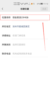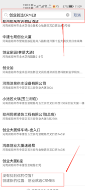 第二步:如图所示,在搜索框里敲入你要创建的地址名字。比如我想创建“创业就选CRMEB”,如图所示输入“创业就选CRMEB”后点击搜索,没有搜索到“创业就选CRMEB”后进入下一步“创建位置”。
