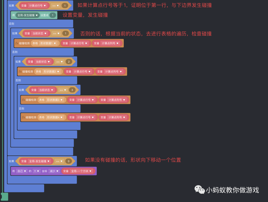 最后,看一下碰撞检测函数中的积木逻辑。