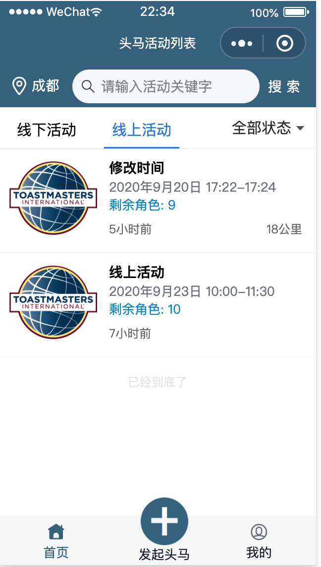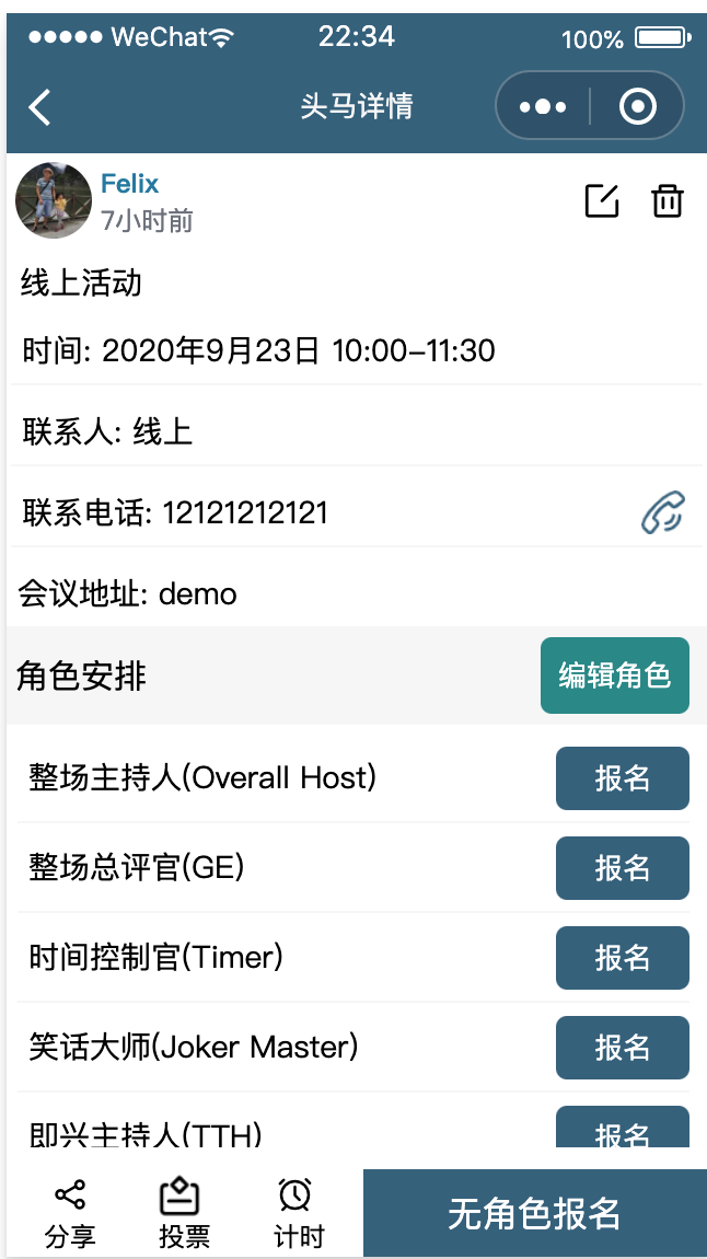 应用场景: 头马活动报名