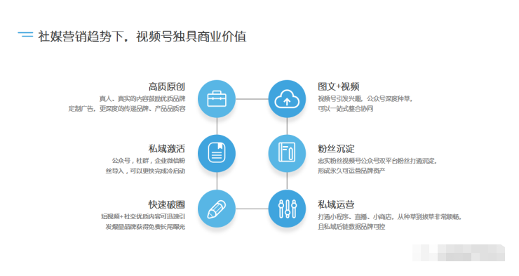 社媒营销趋势下,视频号独具的商业价值有以下6点: